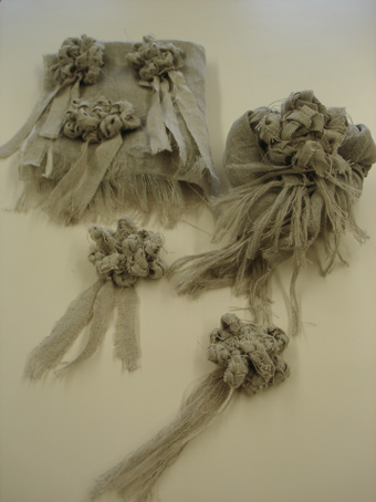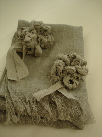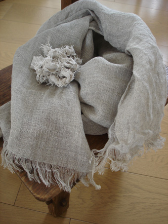 *リネンガーゼストール + リネン裂き編みコサージュ
